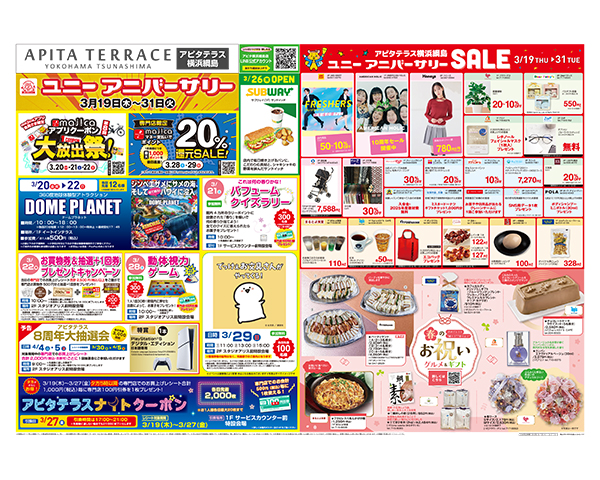 アクセス 施設案内 営業時間 9:00〜22:00 一部専門店は異なります。 WEB CATALOGWEBチラシ チラシを見る チラシを見る チラシを見る チラシを見る WEBチラシ一覧へ EVENTイベント 3/20㊎㊗・22㊐キャンドルワークショップ開催! 2026/03/18 お買物券&抽選+1回券プレゼントキャンペーン 2026/03/18 3/20㊎㊗~22㊐ ドームプラネット 2026/03/18 ちびっこ何回押せるかな?動体視力ゲーム 2026/03/17 でっけぇお文具さんがやってくる! 2026/03/17 これは何の香りかな?パフュームクイズラリー 2026/03/17 イベント一覧へ SHOP NEWSショップニュース ♢アメホリ10周年祭♢ 2026/03/19 紫外線で色が変わる「調光レンズ」5,500円~ 2026/03/10 エースコンタクトのご紹介システム 2026/03/04 コンタクトレンズ処方 2026/03/04 新しいことをはじめるなら、コンタクトのチャンス 2026/03/04 花粉症 2026/03/04 ショップニュース一覧へ INFORMATIONお知らせ 【2026年3月26日㊍】お待たせしました、 SUBWAY OPEN! 2026/03/13 【重要】2階 静岡銀行閉店のお知らせ 2025/12/24 2階『Dear パティズ』短縮営業につきまして 2025/12/01 お知らせ一覧へ