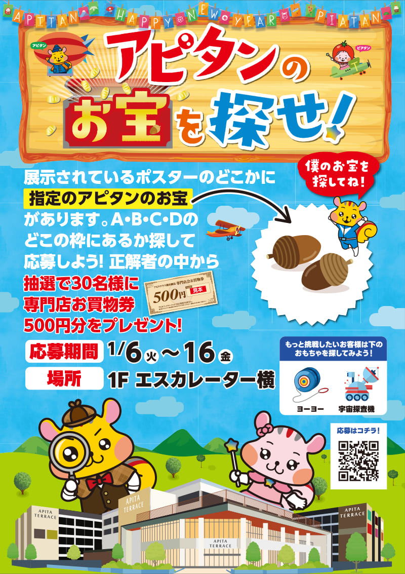 アクセス 施設案内 営業時間 9:00〜22:00 一部専門店は異なります。 WEB CATALOGWEBチラシ チラシを見る チラシを見る チラシを見る チラシを見る WEBチラシ一覧へ EVENTイベント アピタンのお宝を探せ! 2026/01/06 アピ綱にコストコがやってくる! 2025/12/26 【ワークショップ】フォトフレームをつくろう 2025/12/25 1/10㊏~12㊊㊗ ドームプラネット 2025/12/25 BIGおみくじ抽選会 2025/12/25 アピタテラス横浜綱島 屋上フリーマーケット 2025/12/21 イベント一覧へ SHOP NEWSショップニュース 【1/14まで】新年コンタクトPACK 最大3万円OFF 2026/01/04 【1/18まで】プレミアムHAPPYケアBAG 2026/01/04 ♢MAX60% Winter Sale開催中♢ 2025/12/26 ニューバランス CM996SALE 2025/12/22 メゾネットリュクス閉店セール 2025/11/01 【期間限定】五目あんかけラーメン 2025/10/04 ショップニュース一覧へ INFORMATIONお知らせ 【重要】2階 静岡銀行閉店のお知らせ 2025/12/24 2階『Dear パティズ』短縮営業につきまして 2025/12/01 【重要】1階 メゾネットリュクス閉店のお知らせ 2025/10/25 お知らせ一覧へ