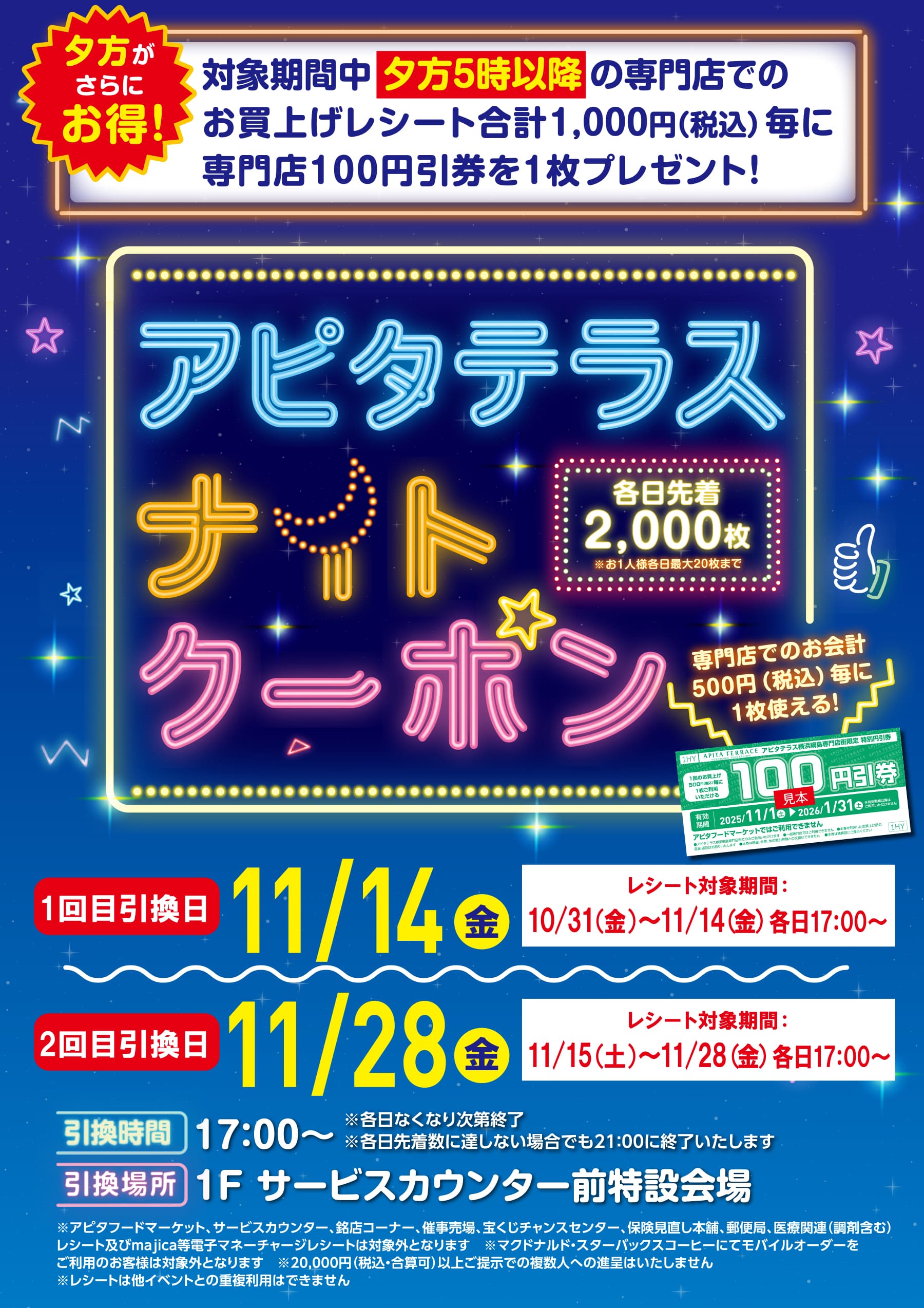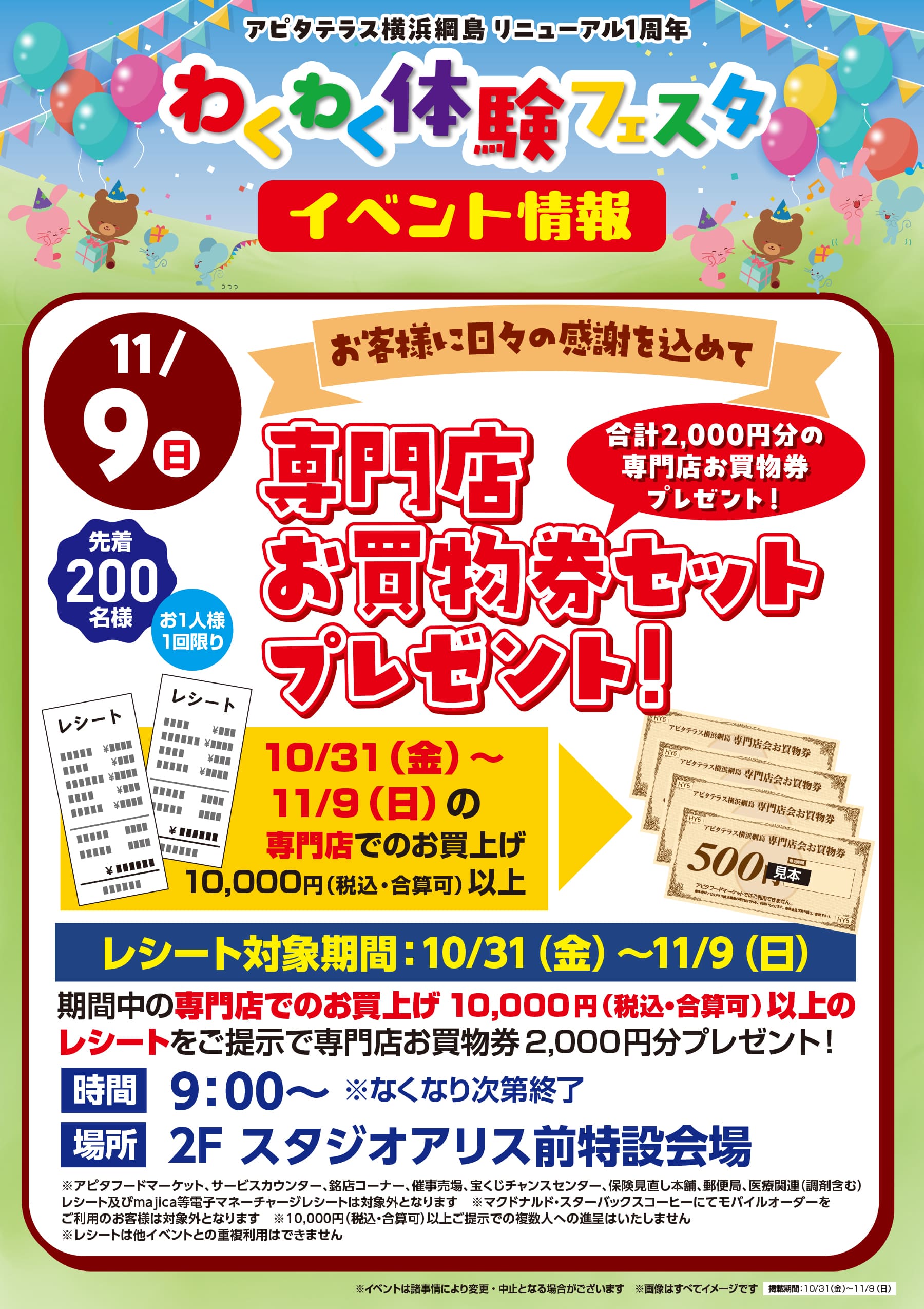HOME イベント EVENTイベント 専門店お買物券セットプレゼント! 2025/10/30 アピタテラスナイトクーポン 2025/10/30 11/8㊏~9㊐ ドームプラネット 2025/10/27 みずみずランド あそべーる水族館 2025/10/17 アピタテラス横浜綱島 屋上フリーマーケット 2025/10/11 アピタテラス キッズクラブスタンプデー 2022/10/03