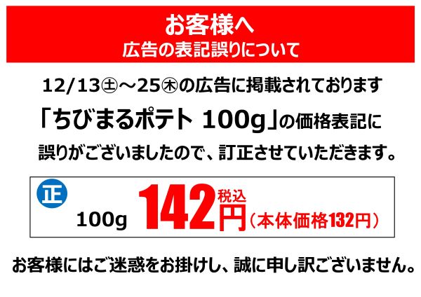 【お詫び】1階『日本一』 広告の表記誤りについて