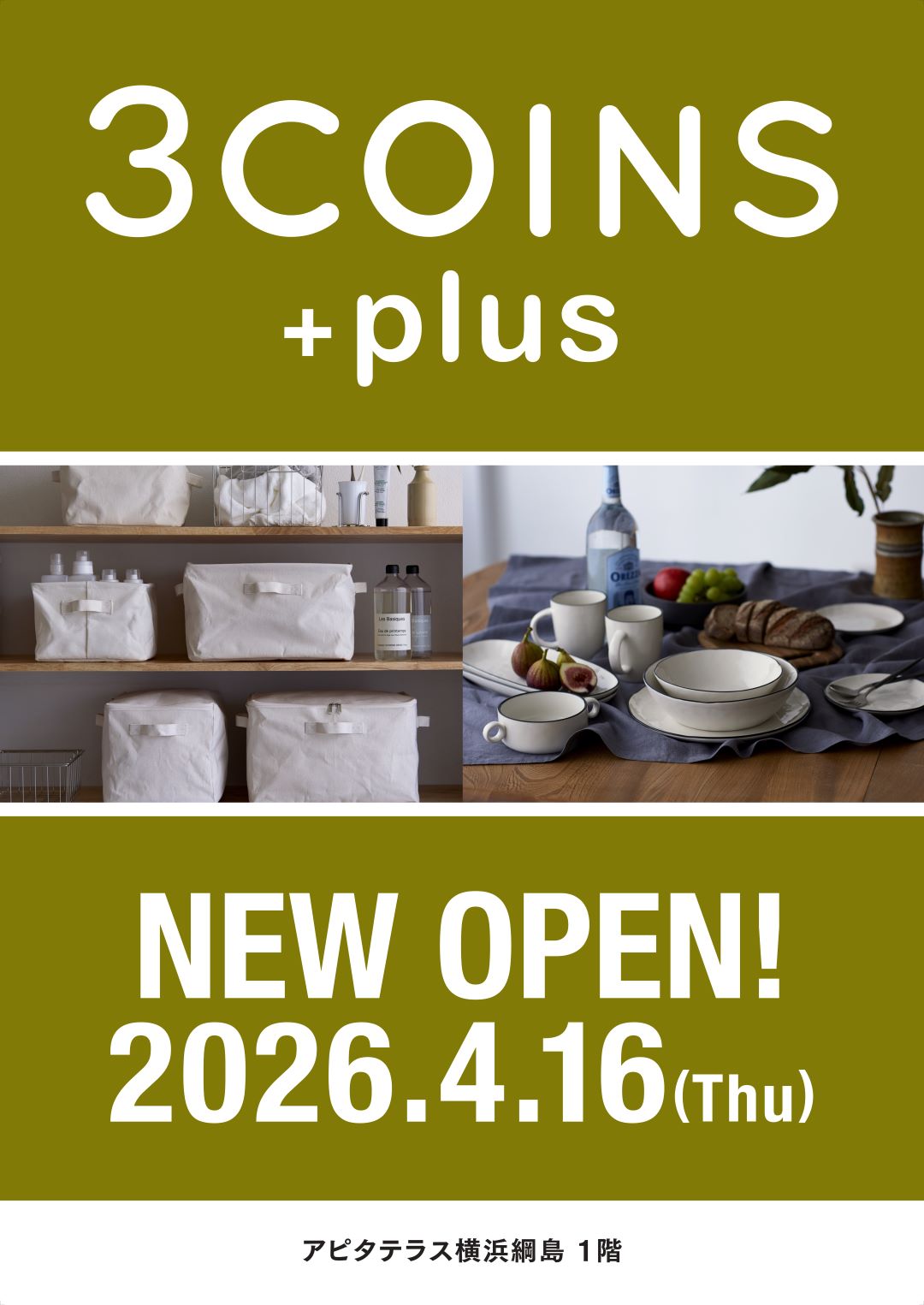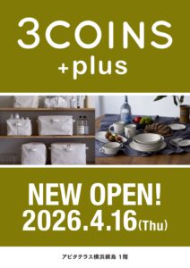 HOME お知らせ 【2026年4月16日㊍】3COINS+plus OPEN! INFORMATIONお知らせ 【2026年4月16日㊍】3COINS+plus OPEN! 2026/04/01 2026年4月16日㊍9時より、アピタテラス横浜綱島1Fに3COINS+plusがオープン! 詳細につきましては、随時ホームページ・館内に掲出させて頂きます。 一覧へ戻る