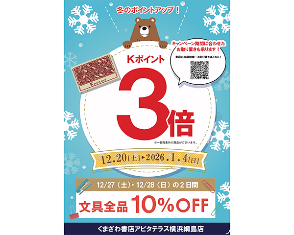 12/20(土)〜1/4(日)の約2週間、毎日Kポイント3倍